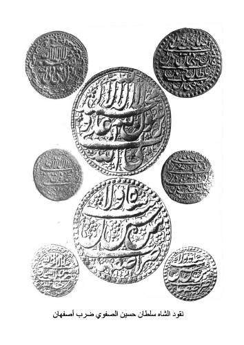 [240]ـ عن نقود الدول التي قامت في إيران منذ عهد الدولة الصفويّة وحتّى الدولة البهلويّة (ينظر: هوشنك فرح بخش: راهنماى سكّه هاى ضربى (جكش) إيران از سال 900 تا 1296هجرى قمرى (1500، 1879) ميلاديّ، شامل دوره هاى، صفوى، أفغانها، أفشارية، زندية، قاجارية. برلين غربي 1975م.